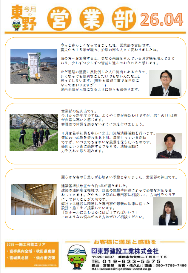 今月の東野営業部(2026.4月)掲載しました! | ハコポン建築